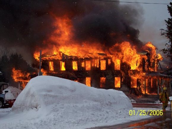What a shock to see this during my daily UP fix on the pasty cam. The Geis family are cousins and we share lots of great times up on the hill near Copper Falls. We had a chance to tour Fred's rennovations a few years ago and can't believe it is gone now. Fred's sister clued me in to check the mining gazette web page. As sad as this is, I now have this spectacular picture as my monitor background. So sorry, Fred