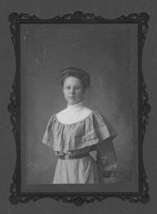 Alta Coates Bartholomew standing against tree -- wearing no hat. Frank Carl Bartholomew was the photographer. (Grandma Bonnie Bee Knutz's maiden name was Bartholomew) |