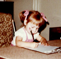 | Marji and me around 1948 (Mom had crocheted Marji's dress) | |