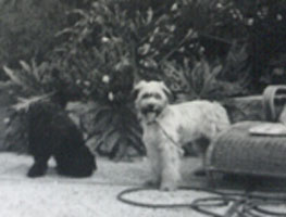 | Our dog Muffet (white) and Linda's dog Happy (black) | |