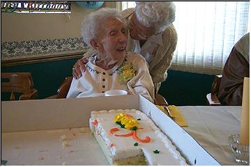 Though our webcast of Estella Lahti's 100th birthday celebration was flawed by technical difficulty, all the guests at Still Waters in Calumet had a wonderful time. Ione Westlake congratulates Estella for her milestone. You can send a greeting, too: elahti@pasty.com |