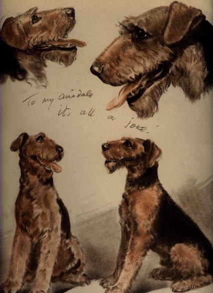 - Pets: 2 Airedale terriers, a Welsh terrier, cats, ducks, bunny