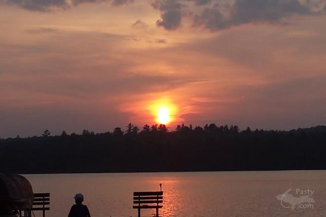 The first two sunsets are from Sally Beaudette, who always manages to snap the most beautiful pictures of the sun setting over Bootjack, but her first shot today is something special indeed. Do you see it? The cloud looks like a map of the U.P., with Isle Royale included. Sally said the cloud didn't stay this shape for long, but she managed to capture it before it changed again.
