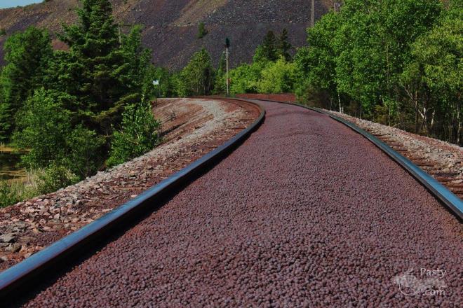 Ahhh, iron ore pellets, a commodity from the fabric of childhood dreams. Grandma's house outside of Iron Mountain was close to tracks that were filled in like this. Ultimate slingshot ammo that would detonate in a totally satisfying puff of blue/grey powder when shot against a brick wall. The utility poles along those tracks carried about 40 wires, and you could scoop up a handful of iron ore pellets and fling them in the general direction of the wires; you usually connected with at least one wire and it made a noise redolent of that haunting, echoing wail you get when you skip a rock across smooth clear ice. To this day, I keep a can of them handy and once every three years or so, I'll do a sapper run into my sister's bedroom and deposit a generous handful between the sheets down there at toe level. The haunting, echoing wail that generates never gets old. Thank you, Danielle!