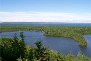 Robert C. Wetton (RIP) has shared innumerable photos throughout the years and always had a good eye for capturing something unusual. He took our second photo today, from his summer home out in Bootjack, back in 2012. With the fog floating in the background and the water so still it reflects like a mirror, it gives the impression that you can see the entire barrels that make the swim raft. But in reality, you can only see half the barrels, as the other half is under water...the reflection completes the look, giving the raft a deck on top and bottom and making it look like it’s hovering in the air.
