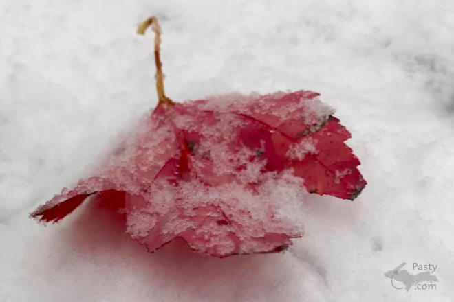 The last photo is a beauty though, contrasting the white of the snow and the bright red of the leaf, mixing fall and winter together. Nature at its finest.