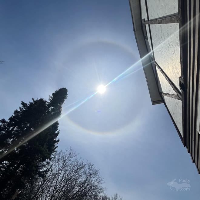 While out walking her four-legged friends in Osceola Township, Deborah Goodell spotted something beautiful in the skies overhead, a Sundog. I did a quick Google search and found the following on Weather.gov: Sundogs are colored spots of light that develop due to the refraction of light through ice crystals. They are located approximately 22 degrees either left, right, or both, from the sun, depending on where the ice crystals are present. The colors usually go from red closest to the sun, out to blue on the outside of the sundog. Sundogs are also known as mock suns or parhelia, which means “with the sun”. A Sundog often means that rain is on the way, so it’s a bit of an ominous weather forecaster telling you to look out for foul or wet weather. No matter what it means, it sure is pretty!