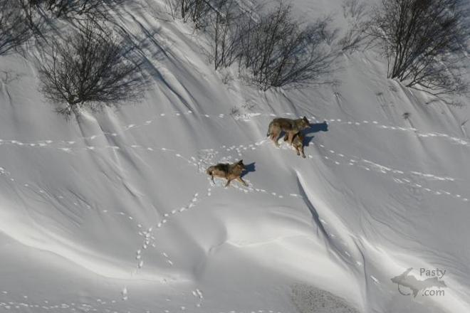 It was good to get away and enjoy the California sunshine, but it's always good to get back home in the U.P., where you can see "one of a kind" scenes like the top two photos from E. Neil Harri. That first one is kind of a self-portrait, with the shadow of Neil's plane hovering over the pack of wolves he was photographing. Then he zooms in closer for a better look at several of the wolves seeming quite oblivious to Neil's presence.