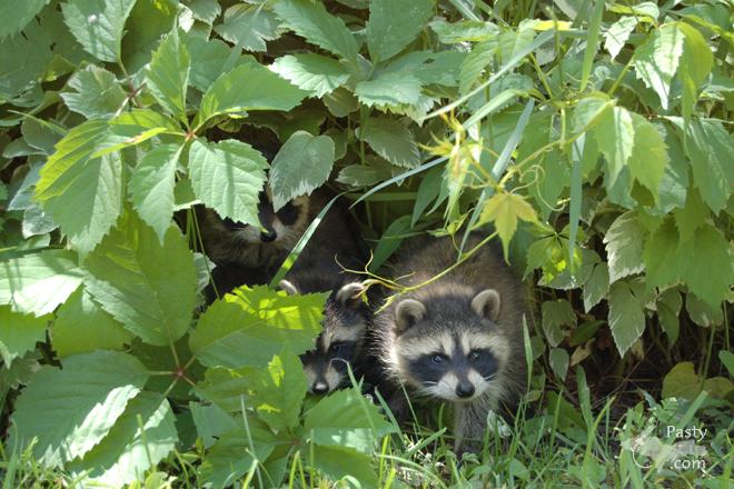 We've become accustomed to viewing photos of Brita Haapala's youngsters, but today she's giving us a glimpse of a different sort of little ones. These are three young raccoons that Brita spotted sneaking a peak at her from the bushes. They sure are cute little critters with those masked faces, but beware.... that's truly a mask hiding who they really are, because they can be very destructive to birdfeeders, garbage cans and the like. If you're one of those folks that raccoons have become a nuisance too, take heart, here's a link with some ideas on ways to cope with them: Dealing with Pest Problems.