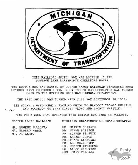 I'd like to add a special thanks to Bridge Operator Dave Poisson also, he supplied the above picture and the info sheet too. Thanks, Dave!