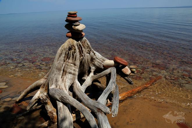 That sandstone statue looks like an inukshuk. The traditional meaning of the inukshuk is "Someone was here" or "You are on the right path."
