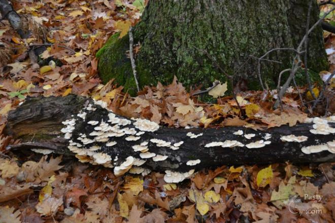Along the forest floor, Judy spotted some type of fungi growing on a broken branch, surrounded by fresh fallen leaves, while a bold green moss covers the trunk of the tree nearby. So many colors to behold.