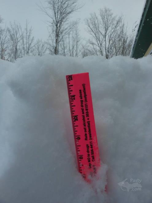 During the "big dump" of snow we received this past week here in the North Country, Donna MacIntosh set a 12 inch ruler out on her deck to measure how much was accumulating there in Baraga. You can see in her first shot that the initial measurement was just above 7 inches. Then the next morning, she could barely see the ruler, so it was already over a foot by then. I'm not sure what the time span was for the next photo, but Donna said it was between 13 - 14 inches at that point. That's a whole bunch of snow in a short time.