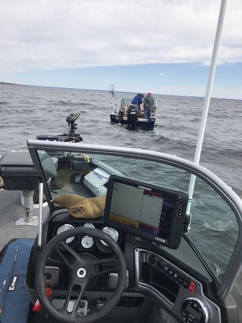 The ice is out on Green Bay. The boat launches are open so we decided to put Steves boat in the water and see if we could find the white fish. Whitefish Willy joined us so we had the Wizard with us.