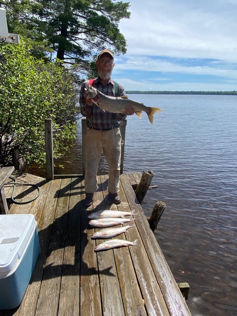 Our total fish for the weekend was 40. There were less fish there this year and they were smaller. They did have quite a few large smelt in them. The strange thing is that they haven't spawned yet. Interesting it we don't have a clue what it means for the population of smelt in the lake.