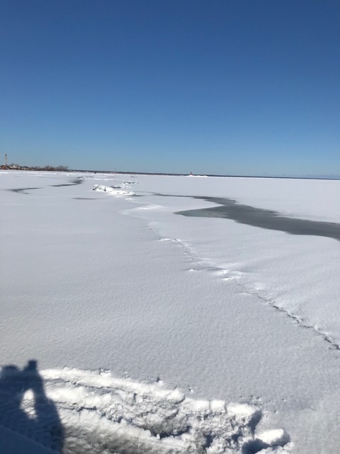 The crack had moved while we were out there. The temperature had risen to 50 degrees and things had shifted a little. We used the crack planks and took the four wheelers across. Another nice day out on Green Bay.